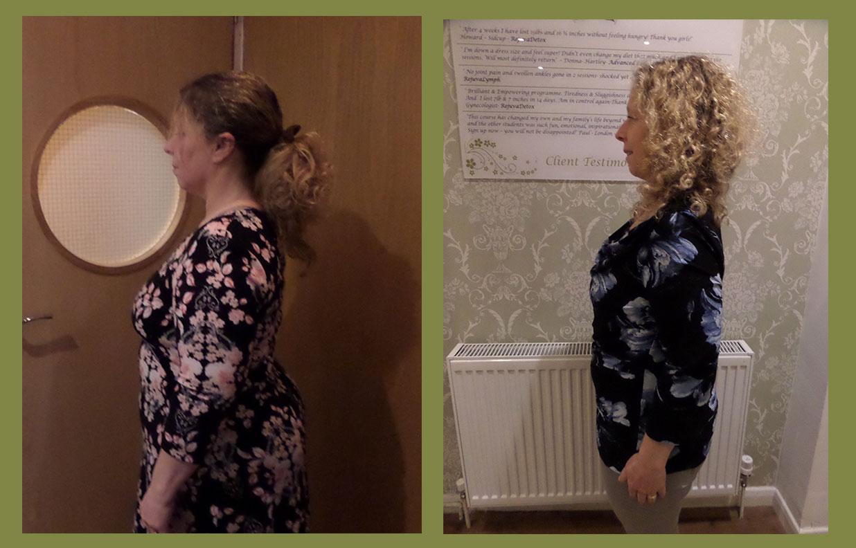 ‘So pleased to have found a diet that actually works and that was so easy to stick to, I finished the 6 week course and lost a total of 18lbs and 41.5 inches. So many parts of this diet I will be sticking to and intend to keep up the lymphatic drainage going forward. I definitely look and feel a lot better, I am less bloated and sleeping deeper and for longer. Thank you all so much!’- Dawn