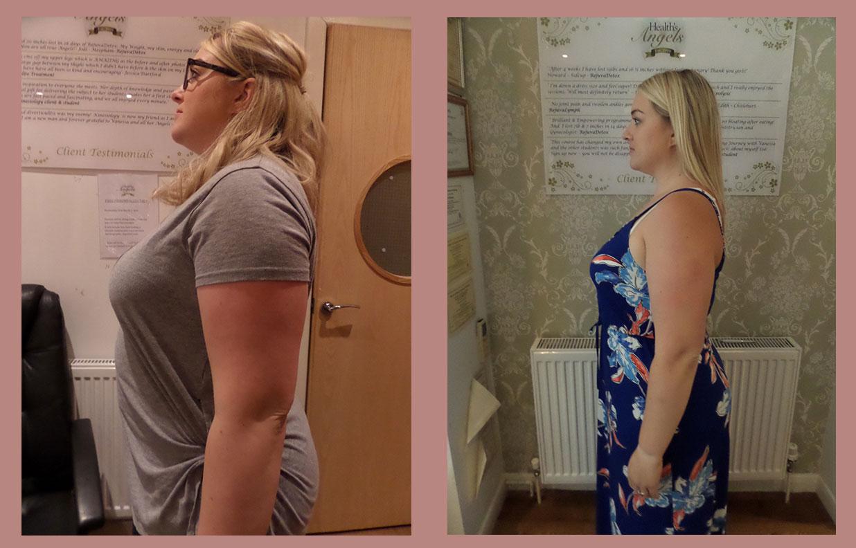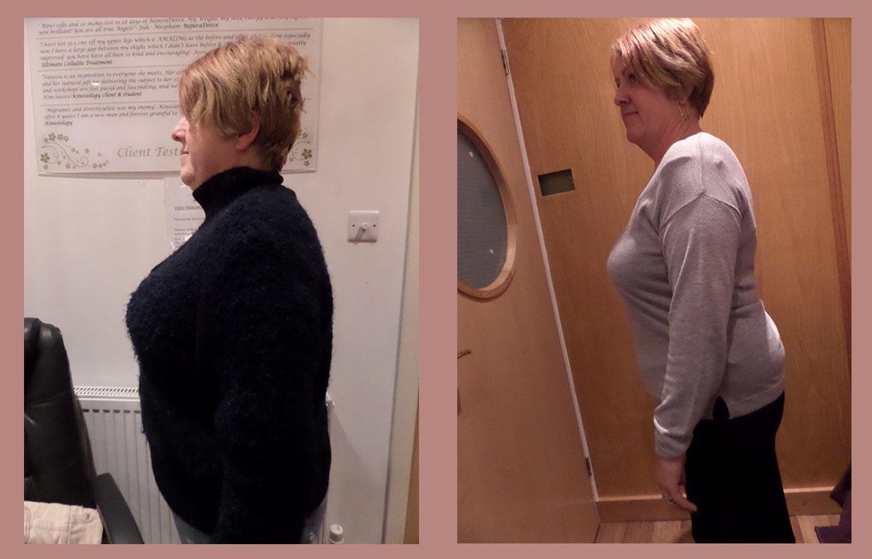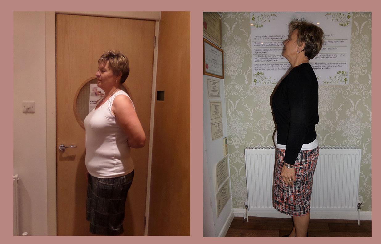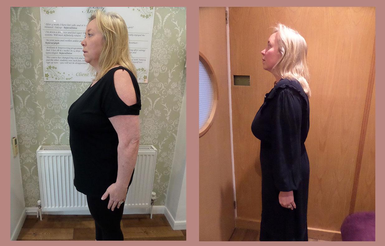 “I lost 9lb and 26 inches in four weeks. I can’t begin to explain how unwell I felt and looked!! 4 weeks later I feel fantastic, well, alive and living my life to the full! I actually feel quite emotional about it because I have my life back on track with the help of all the lovely staff. I am going to continue having treatments and follow the maintenance plan. Thank you so much”.