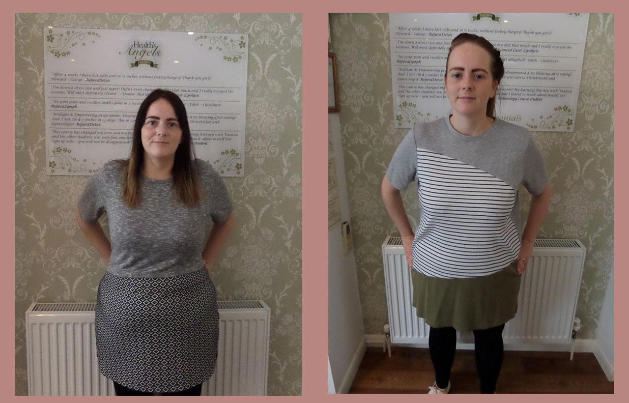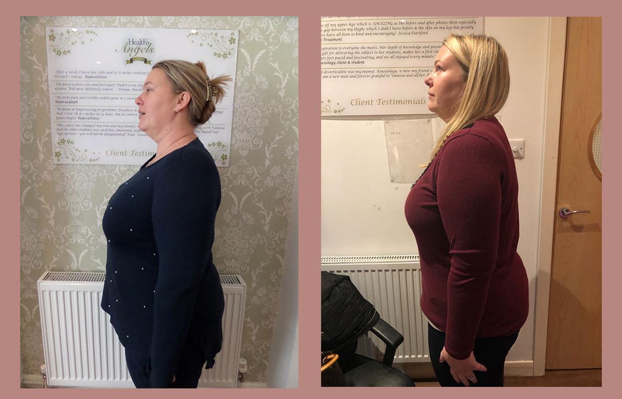 “I lost 1 stone and 8lbs and 41 inches in 6 weeks ! Have more energy and love clothes shopping now! I now no longer feel sluggish, emotional and unhappy with myself Now feeling much happier with the weight and inch loss noticeable, I have more energy. Thank you for the support Angels”.
